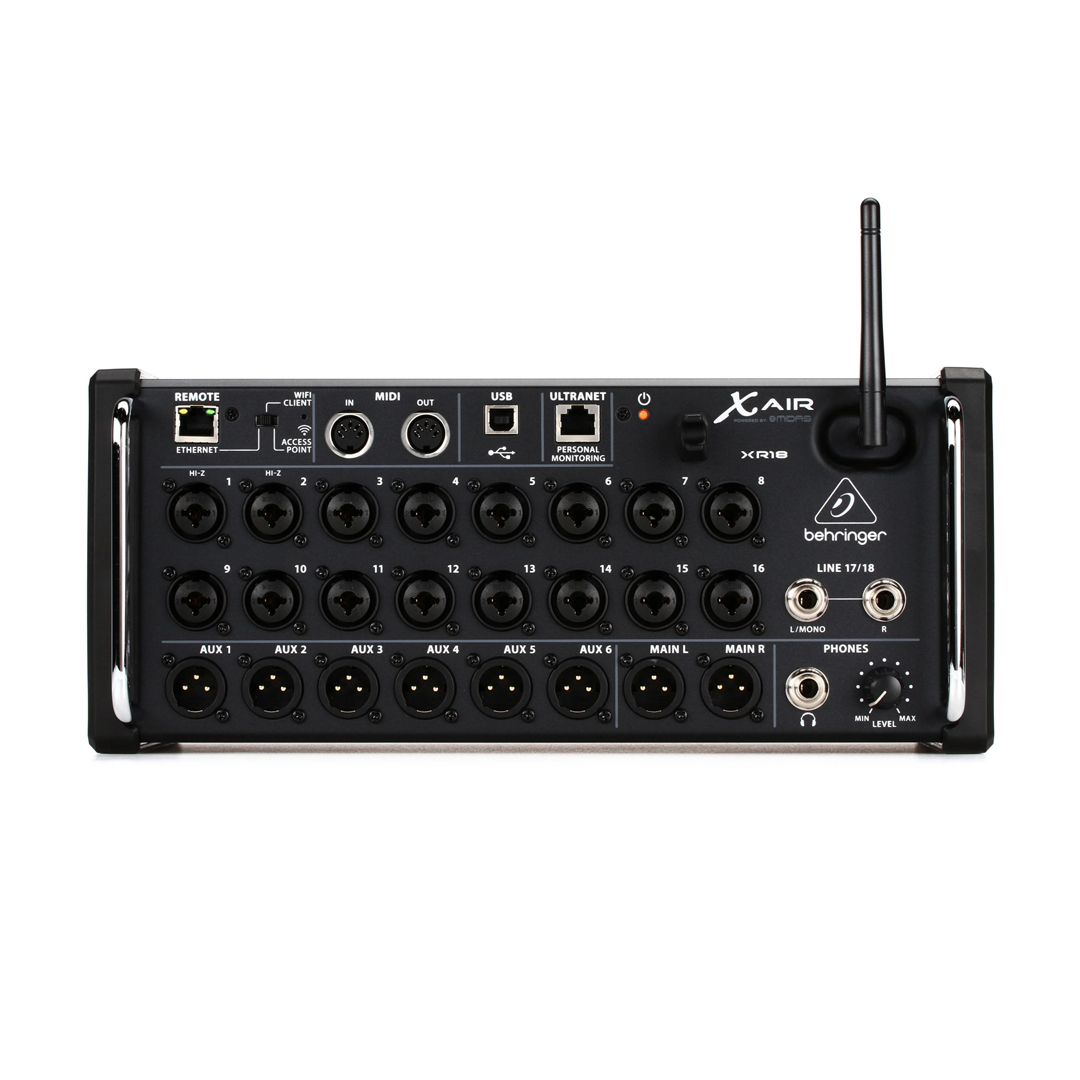 Behringer’s cutting-edge X Air digital mixers integrate with your iPad or Android tablet for unprecedented mixing power and mobility. Plug in your mic and line level sources and mix from anywhere in the venue or studio via the free remote control app. The XR18 is an 18-input, rackmountable stage box unit with 16 gain-programmable Midas-designed microphone preamps, two hi-Z inputs, Behringer’s renowned X32 effects rack, a 100-band Real Time Analyzer on all channel and bus EQs, an 18 x 18 USB interface, and integrated Wi-Fi, all in a convenient rackmount chassis. Just add mics, and you have everything you need to mix a live show and record pristine multitrack sessions straight to your DAW. Complete with the ability to integrate with pre-existing P16 series personal mixers, the Behringer XR18 gives you a whole new way to mix.